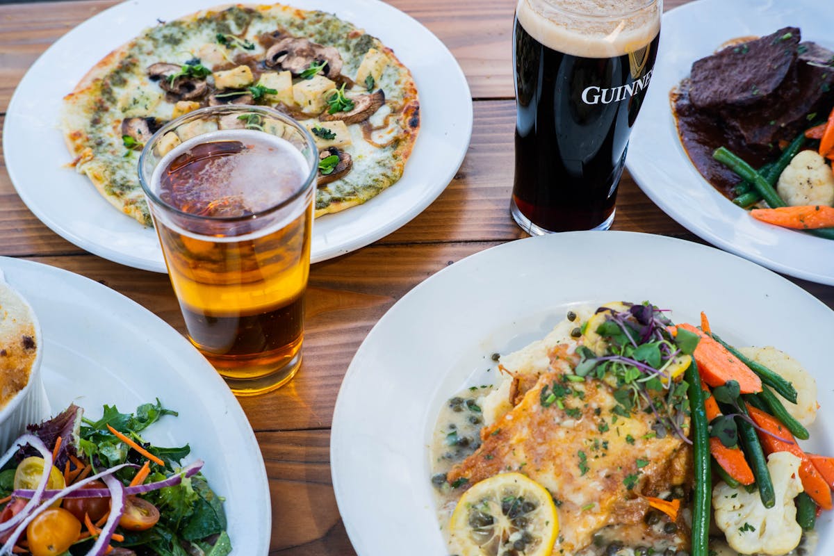 lemon caper sauce, mashed potatoes, vegetables